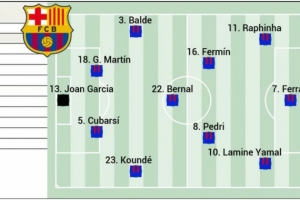 阿斯预测巴萨首发:拉菲尼亚、费兰、亚马尔三叉戟,贝尔纳尔在列