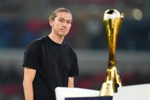 体育资讯12月18日讯 洲际杯决赛,弗拉门戈点球大战遗憾不敌巴黎,无缘冠军。赛后颁奖仪式上,弗拉门戈主帅费利佩·路易斯凝视着洲际杯冠军奖杯。