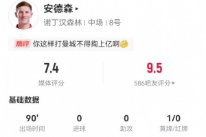 体育资讯12月27日讯 诺丁汉森林在本轮英超1-2不敌曼城,埃利奥特·安德森本场数据如下: