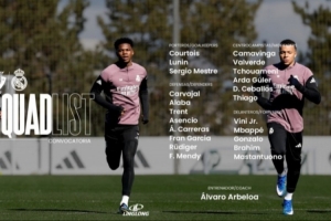 体育资讯2月21日讯 北京时间2月22日凌晨1:30,2025-26赛季西甲联赛第25轮,皇马将客战奥萨苏纳。赛前,皇马官方公布本场比赛球队大名单,