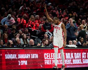 此役,火箭球星杜兰特出场40分01秒18投11中,三分8中6、罚球14中11,砍下39分4篮板7助攻2抢断1盖帽。