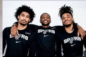 体育资讯12月11日讯 马刺官方晒图:榜眼秀哈珀接受采访时谈到了自己和福克斯以及卡斯尔的外线三人组。