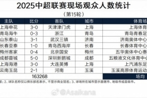 2025中超联赛现场观众人数统计(第15轮)