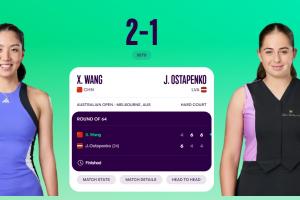 体育资讯01月22日讯 2026年澳网女单第2轮,王欣瑜2-1逆转大满贯冠军、24号种子奥斯塔彭科,生涯首次闯入澳网女单32强。