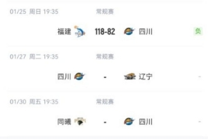 本场失利后,四川本赛季已经遭遇19连败,还未取得一场胜利,接下来他们将先后对阵辽宁、同曦、新疆和山西。