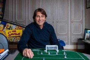 在都灵的孔蒂家中,我们在他的书房聊了三个小时的足球。书房里摆着一张桌上足球台,还有一台辛普森一家主题的弹珠机。之后,孔蒂带着我参观了他的家。墙上挂着一幅装裱好的证书,那是他的意大利共和国功绩骑士勋章。伊丽莎贝塔笑着解释道:“就像埃尔顿·约翰爵士那样的荣誉。”