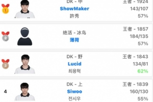 体育资讯2月4日讯 DK人均排位乱杀👊ShowMaker登顶,打野Lucid第三、上单Siwoo第四。