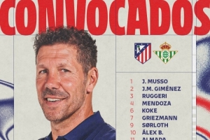 马竞对阵贝蒂斯大名单:卢克曼、阿尔瓦雷斯、瑟尔洛特在列